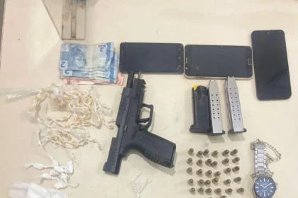 Um revólver calibre 38, 26 munições, sete cigarros eletrônicos, duas máquinas de…