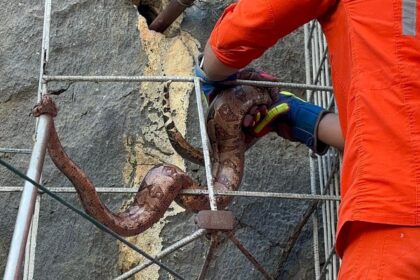 Cobra é resgatada pelo 20º BBM após aparecer no quintal de casa em Bom Jesus da Lapa
