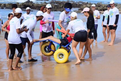 Banho de mar assistido possibilita inclusão para pessoas com deficiência em Salvador