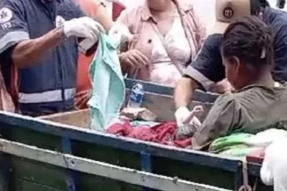Uma mulher deu à luz em cima de uma carroça na manhã…