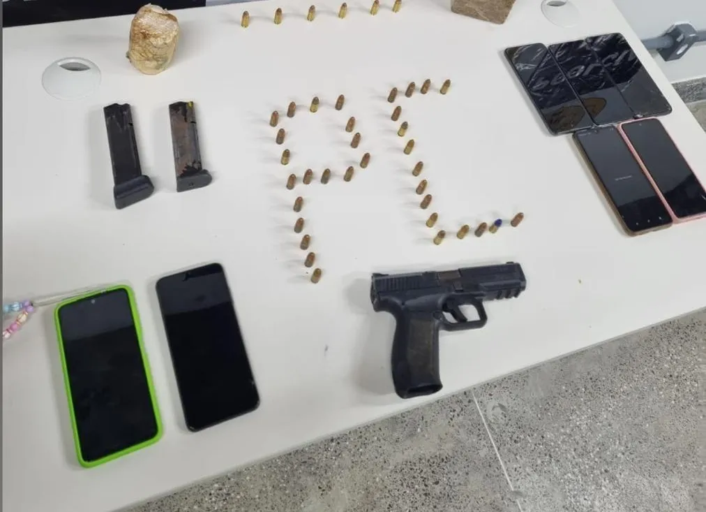 Durante a operação, foram apreendidos uma pistola, munições, dinheiro, dez celulares e maconha.