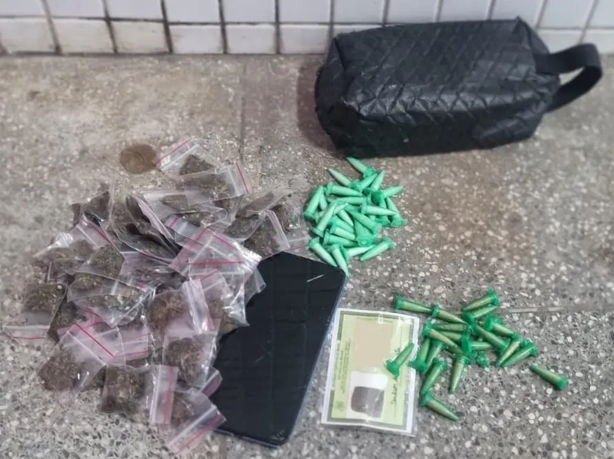 Abordagem foi realizada no indivíduo e, com ele, foram encontradas diversas porções de cocaína e maconha.