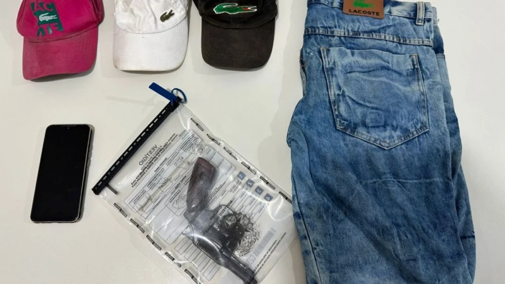 Um homem estava em frente à residência próxima ao local onde a arma foi encontrada. Após verificação dos policiais, constatou-se que ele atende por um apelido que a denúncia anônima informou que um possível envolvido atenderia.Com a fundada suspeita de que a residência poderia estar sendo utilizada para armazenar outros materiais relacionados ao crime, foi realizada busca no local, onde foram localizadas duas porções de maconha, três bonés “Lacoste” e uma bermuda “Lacoste”, além de um aparelho celular.