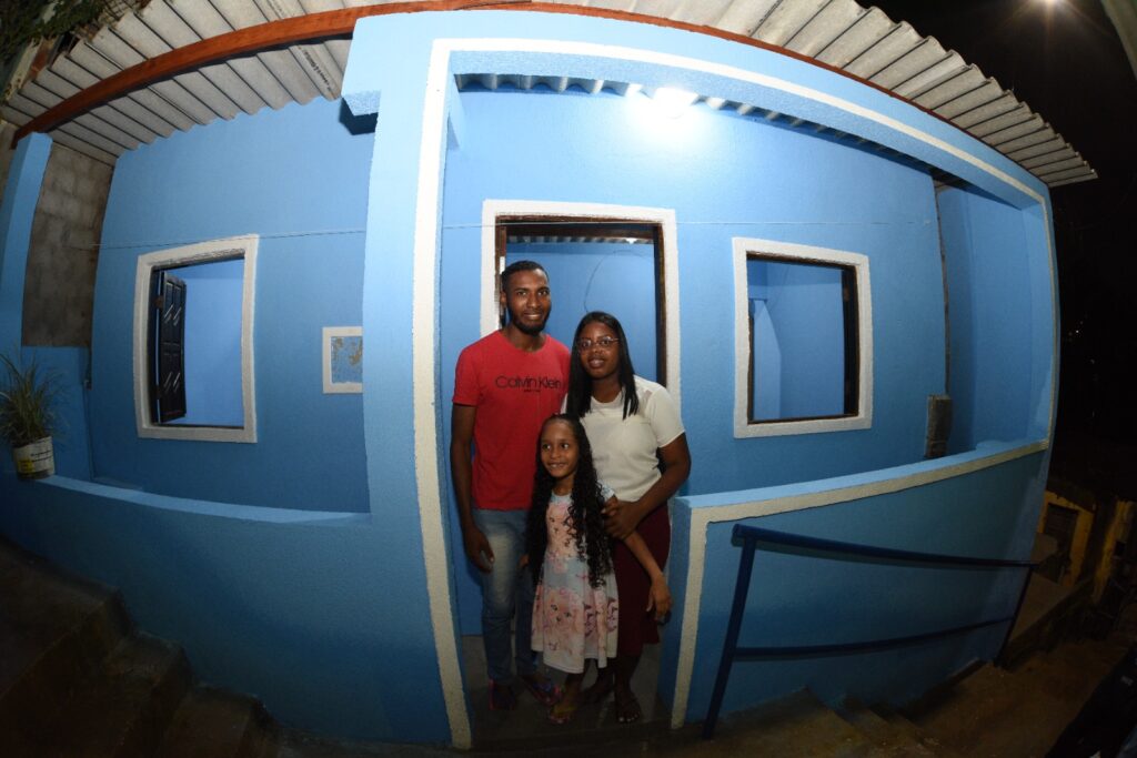 Vida nova – A família de Ademir de Araújo Batista e Lorraine Batista foi uma das beneficiadas pelo programa. Eles moram com os filhos Laryssa e Benjamin numa casa que tinha diversos problemas de infraestrutura. “A casa ficou ótima, agora é outro ambiente. Fez a reforma do banheiro, que era fora de casa e agora é dentro. Colocou portas nos quartos e trocou o telhado. Ficou uma mega casa”, comemorou Ademir, que mora na comunidade desde a infância.