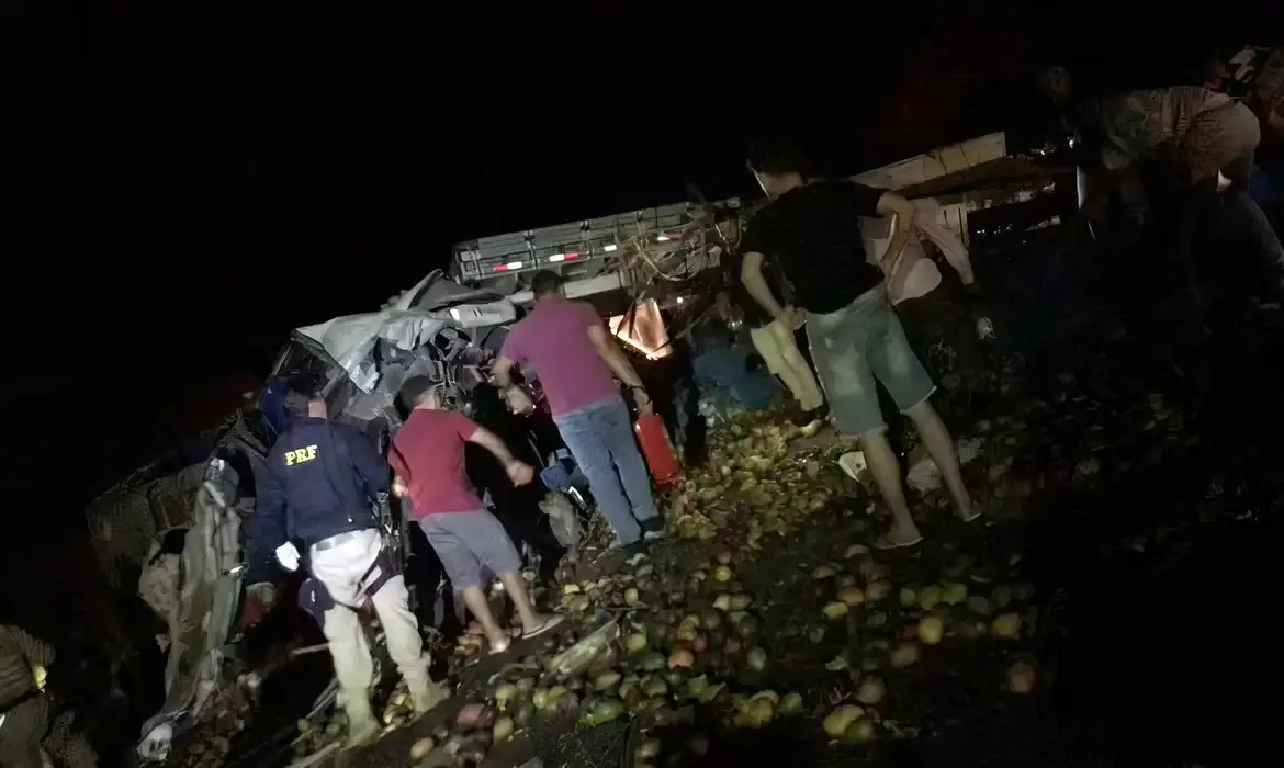Dessa forma, ficou retificado que o número de mortes no acidente entre o caminhão e o micro-ônibus ficou em 24 pessoas, sendo 21 no coletivo e três no caminhão que transportava a carga de mangas.