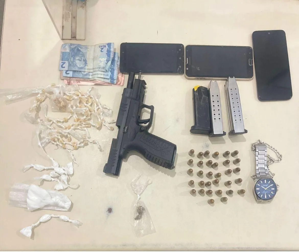 Os indivíduos foram abordados e, com eles, foram encontradas 79 pedras de crack, 12 porções de cocaína e uma de maconha. Os homens indicaram a localização de dois outros suspeitos, que foram presos em Madre de Deus. Com eles, foram apreendidos uma pistola calibre 9mm, 32 munições e três carregadores.
