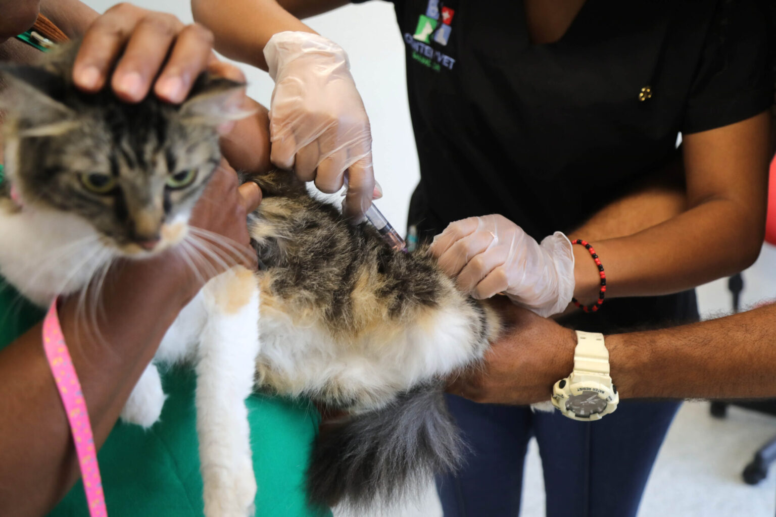 Cerca de 300 doses estão sendo distribuídas diariamente no local, totalizando 900 doses aplicadas. A vacina V4 protege os gatos contra quatro doenças virais, sendo elas a panleucopenia, rinotraqueíte, calicivirose e a clamidiose.
